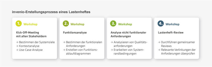 Das Projektgeschäft ist stressig und Sie scheuen die zeitlichen Aufwände für das Erstellen eines gut verständlichen Lastenheftes? invenio unterstützt Sie mit seinem Projekt-Support bei der gemeinsamen Identifizierung der notwendigen Inhalte für das zu entwickelnde System und dessen Kontext sowie der anschließenden Strukturierung der gewonnen Informationen. Darauf basierend erstellen unsere Expert:innen Ihr projektspezifisches Lastenheft, mit dem Sie die weiteren Entwicklungsaktivitäten zielgerichtet angehen können.