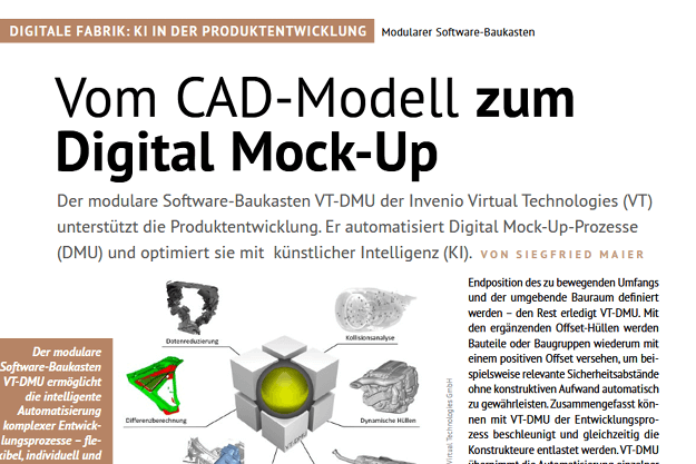 Seit mehr als 25 Jahren unterstützen wir unsere Kunden dabei, ihre Produkte digital zu entwickeln, manuelle Prozesse zu vereinfachen oder vollständig zu automatisieren. Dadurch schaffen wir Freiraum für sie, um ihre eigenen Innovationen voranzutreiben. Für uns ist digitale Produktentwicklung mehr als nur ein Begriff. Wir leben und verstehen die hochkomplexen Prozesse und IT-Landschaft, die damit zusammenhängen, und verbinden Digital Mock-Up (DMU) mit Digitalisierung, Big Data, Industrie 4.0 und dem digitalen Zwilling.