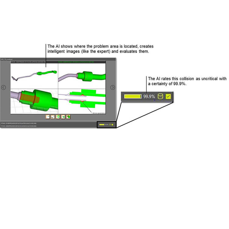 The AI is integrated into our standard product Quality Monitor (QM) and is already being used successfully in production. Many of our customers use QM to calculate several million component pairings for geometric consistency every day. The generic AI automatically prepares potential problem areas so that all relevant information is available at a glance and users can assess the conflicts quickly and efficiently. This significantly reduces manual effort. The AI can be used in a variety of ways, from preparing the data and enriching it with additional information to independently assessing the conflicts.